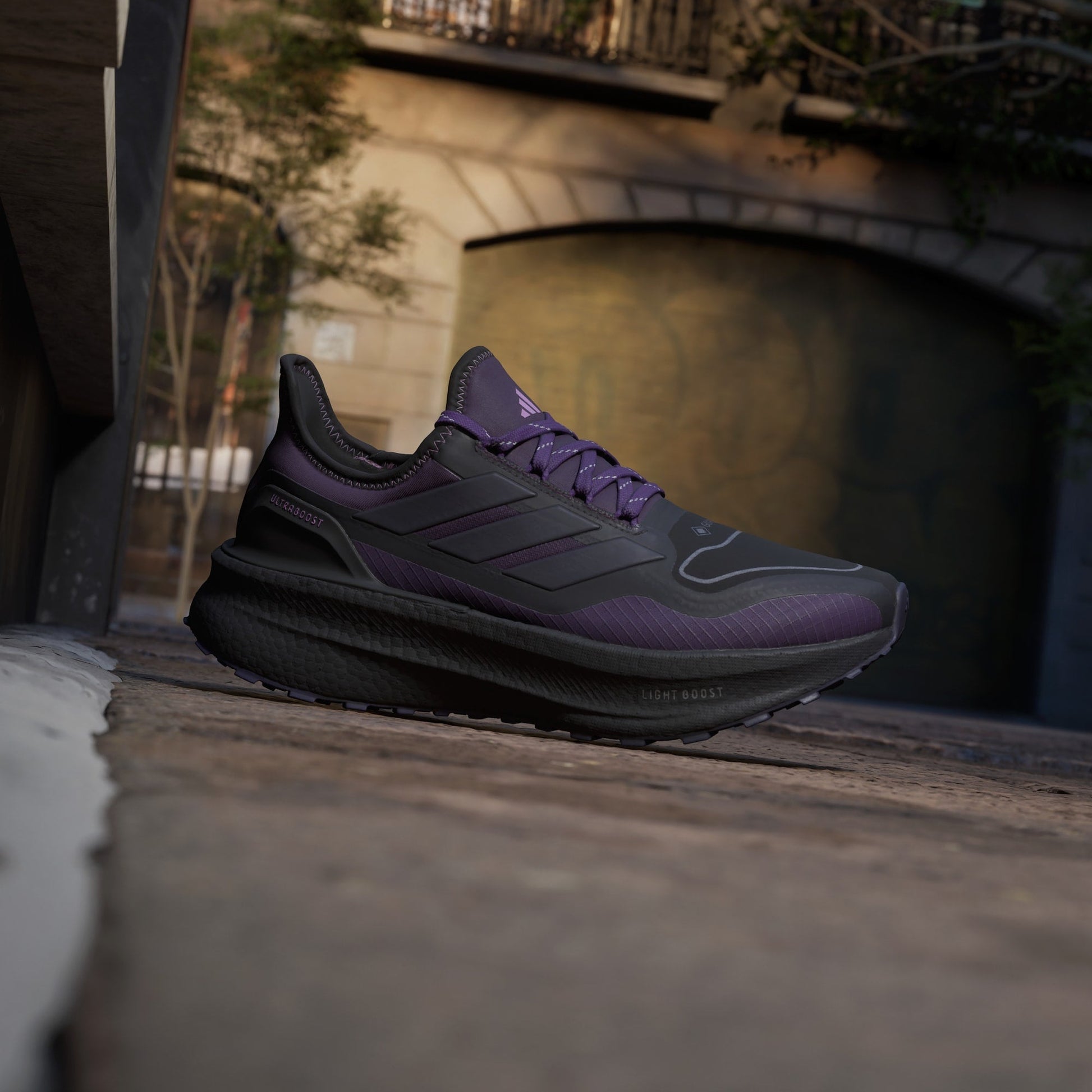 Fly over streets and sidewalks that are slick with rain. Your feet will stay dry and comfortable in these adidas running shoes made with a waterproof, breathable GORE-TEX® membrane. Light BOOST cushioning, our lightest BOOST yet, returns energy so you can go for miles with ease. Continental™ Rubber grips even when it's wet out.
